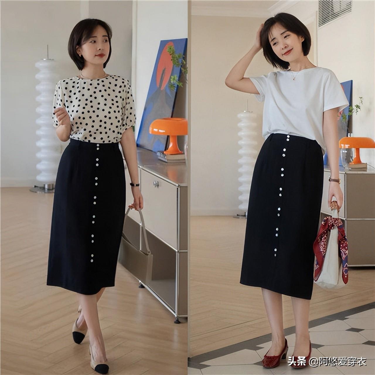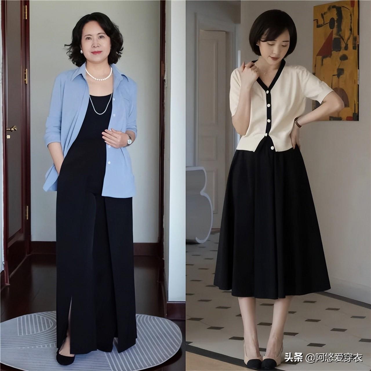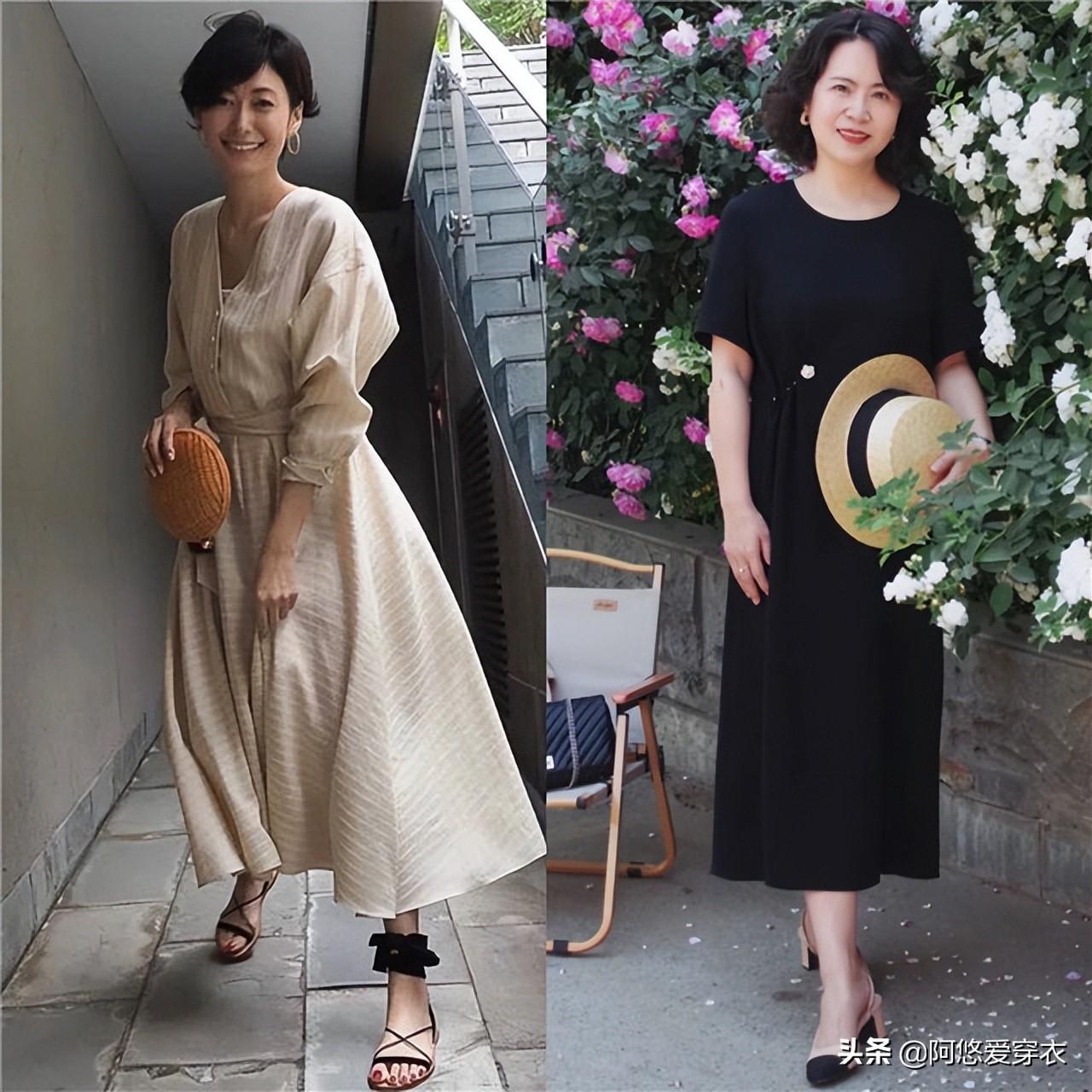 当你不知道穿什么的时候,有一条小黑裙肯定是没问题的,因为小黑裙本身就有遮肉显瘦的果,黑色的裙子会比其他的白色或者是彩色系的裙装看上去都更加显瘦,中年女性身材不好的话,穿黑色肯定没问题。