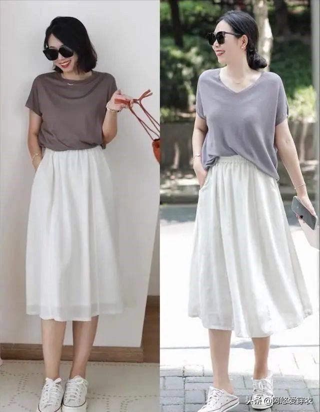 在夏天穿裙子没有大家想象的那么困难,但是大家也不要随意去穿,要是没有把自身的优势给展现出来,就有可能会显得没有品位,真正有气质的女人在夏天穿裙子的时候还是更喜欢用这种简约的T恤,去搭配各种优雅成熟的裙子。