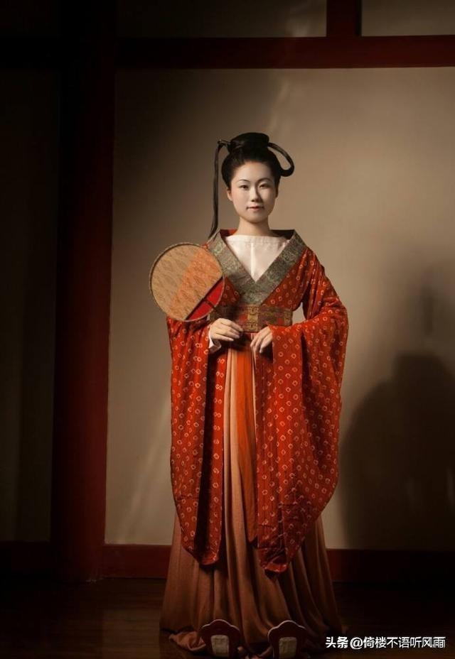 隋朝隋朝女服,短襦都用小袖,下身是紧身长裙,裙腰系到腰部以上甚至系在腋下,用丝带扎紧。