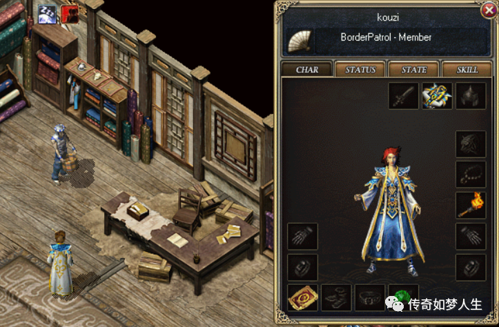 这一件是道士105级的衣服,正面是水蓝色,背面是银灰色,装饰有一些金黄色的纹理,整体仙风道骨,可惜当时也没穿几天。