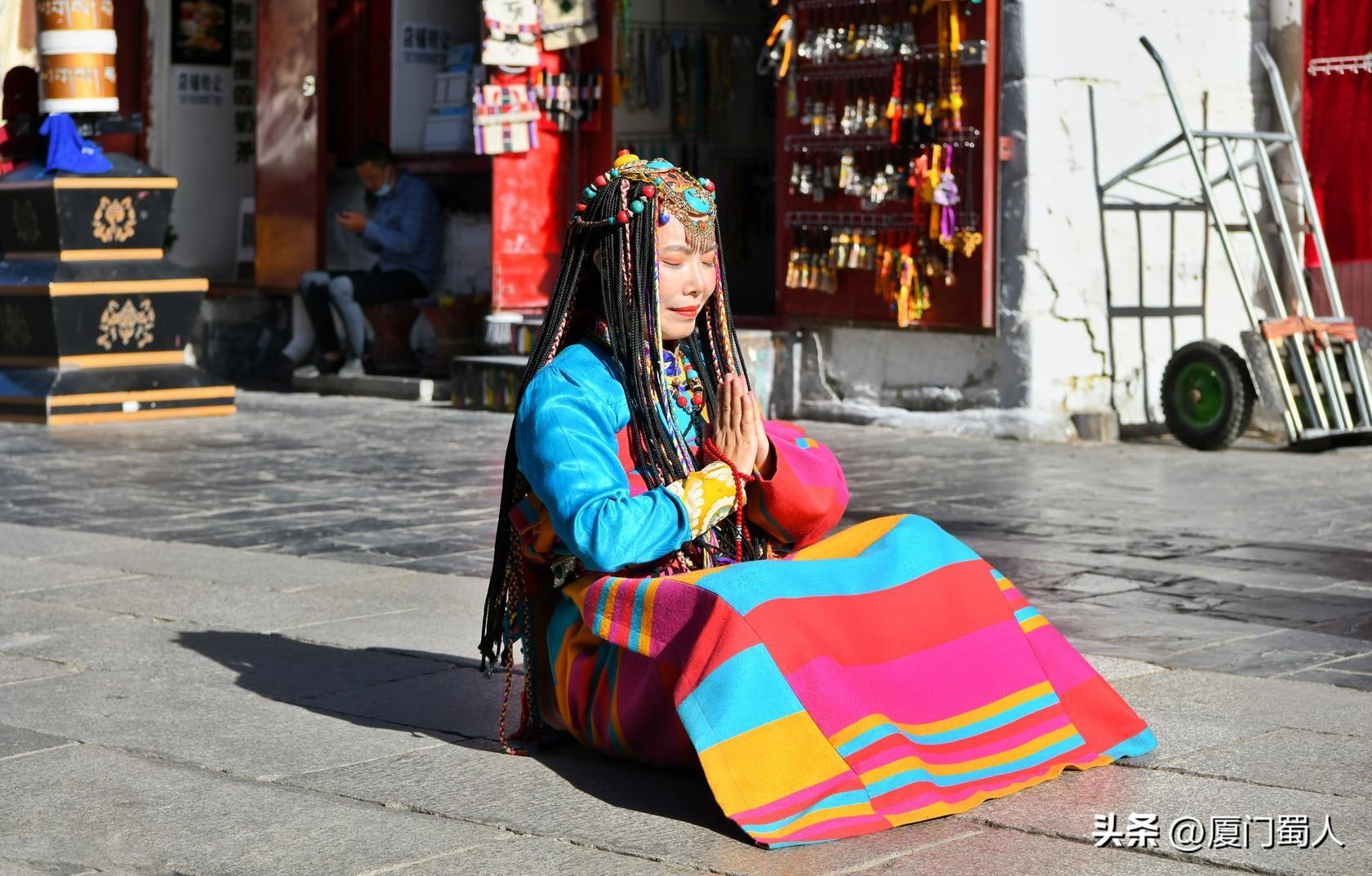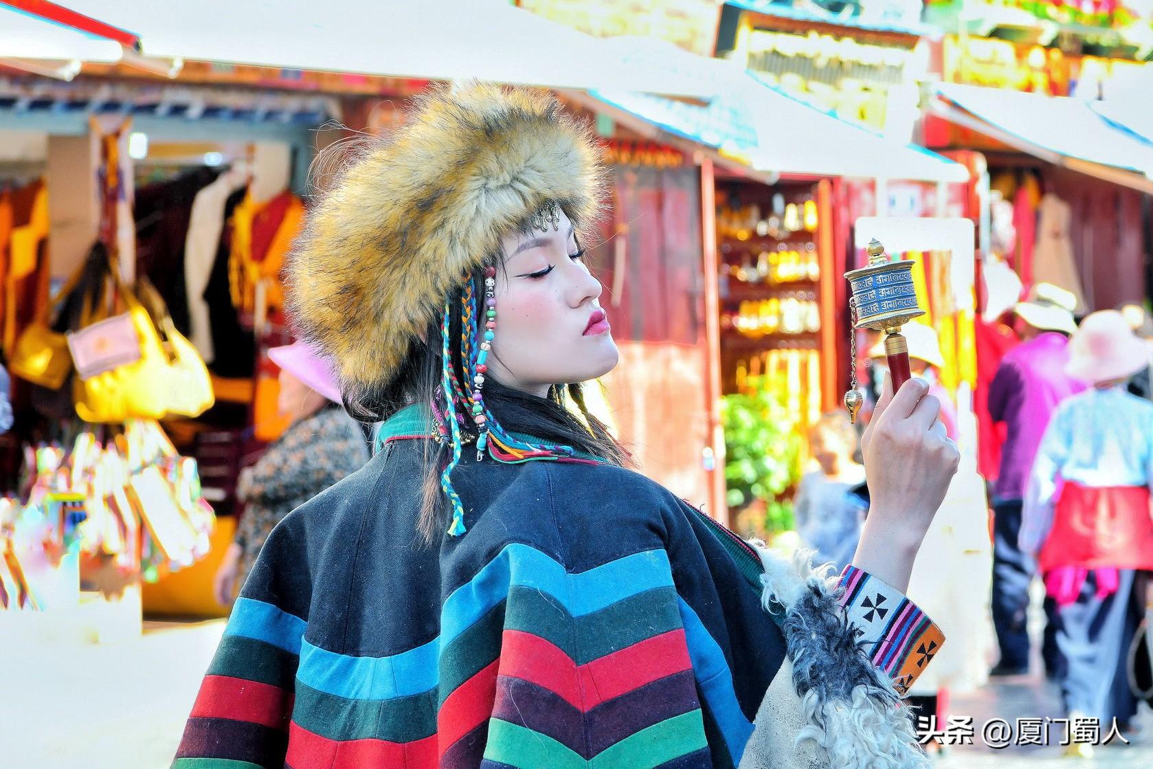 古老神秘的八廓街上随处可见藏族服饰唯美标配的时尚风情。