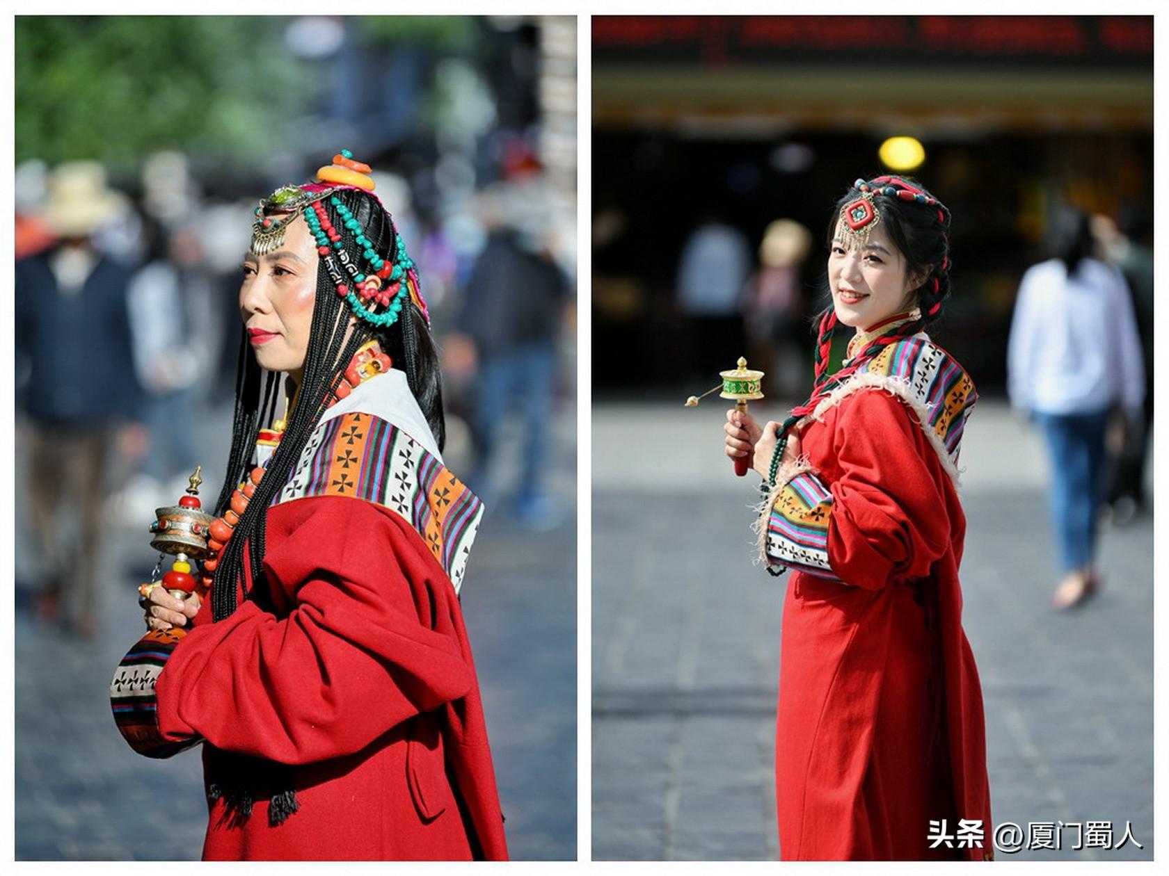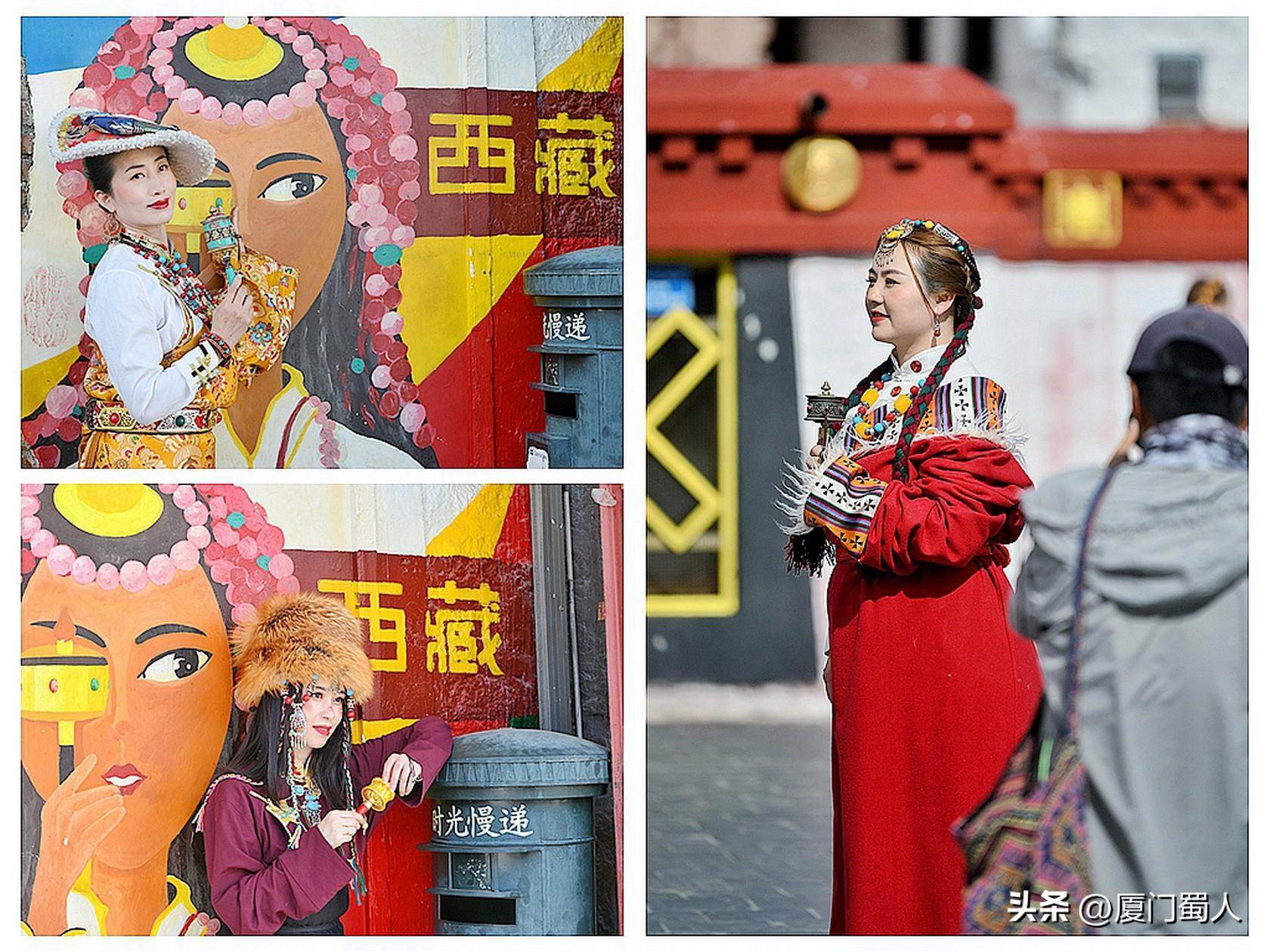 在布达拉宫前、八廓街、大昭寺广场等拉萨热点旅游打卡地,扮成藏人的四方游客成了镜头捕捉的另类风景。