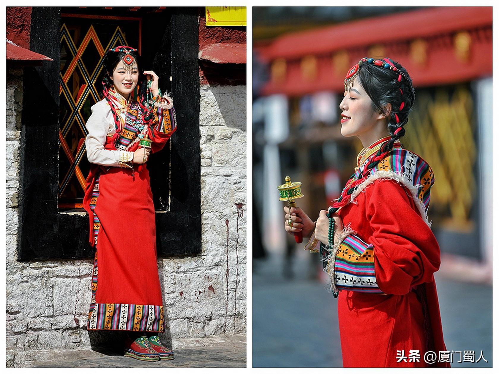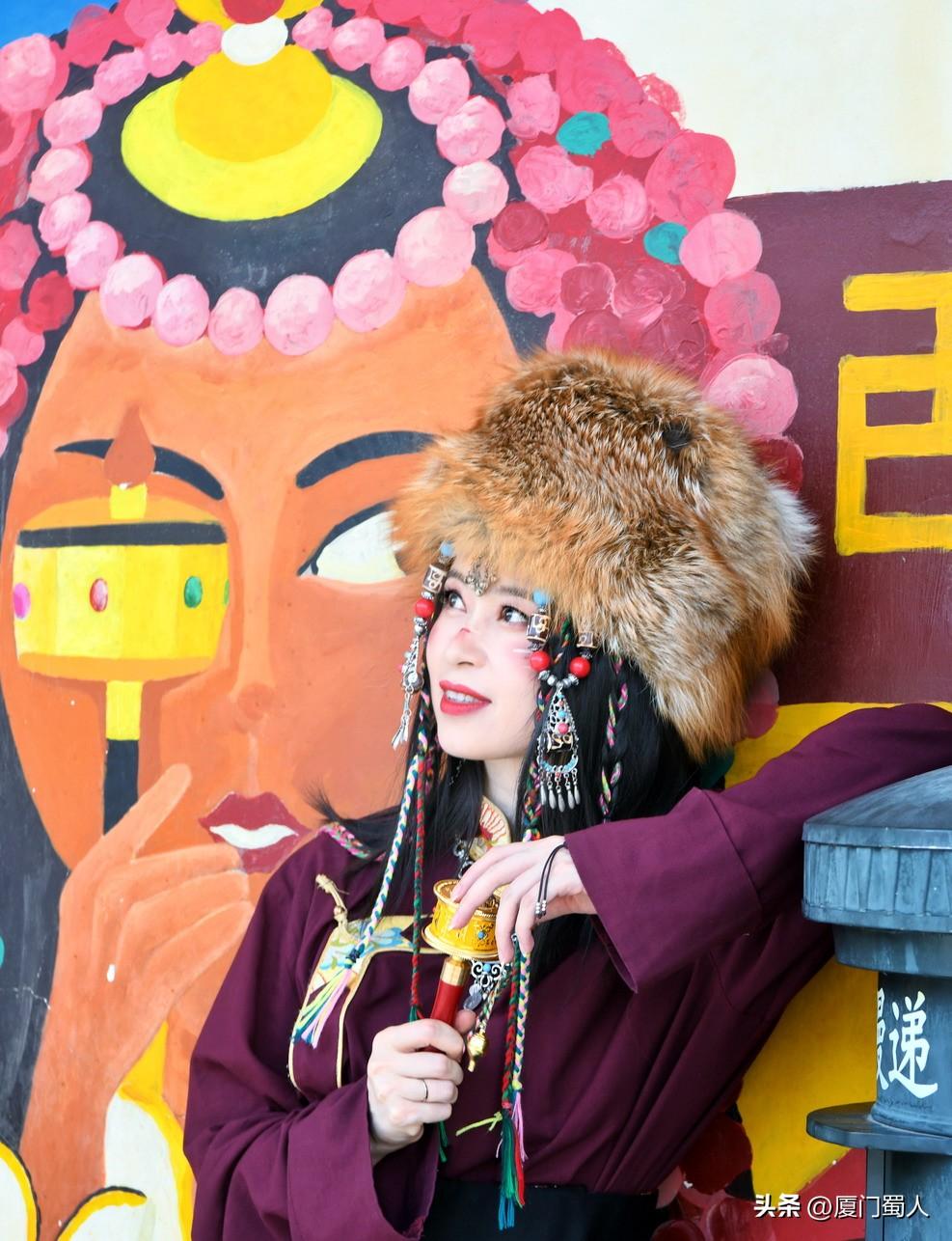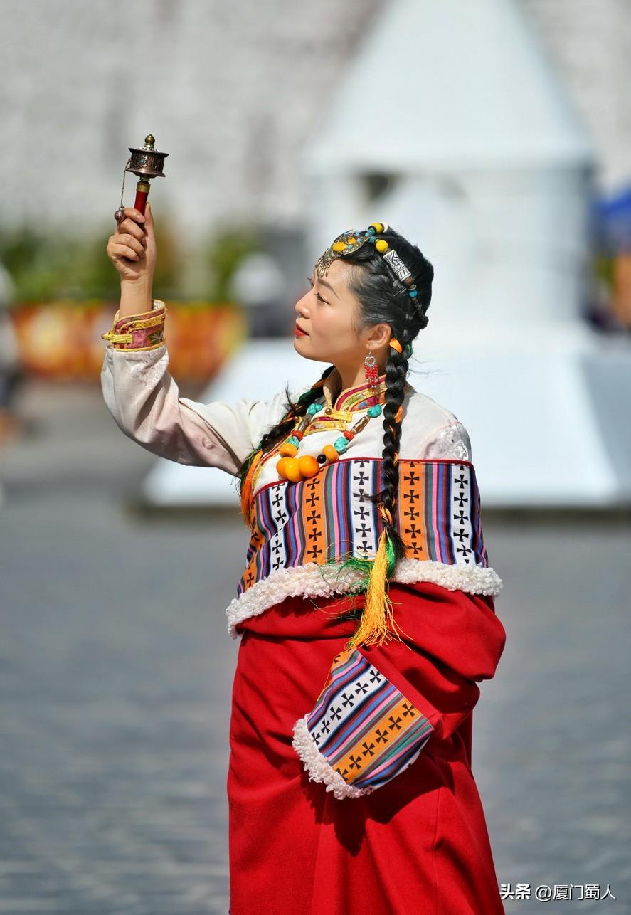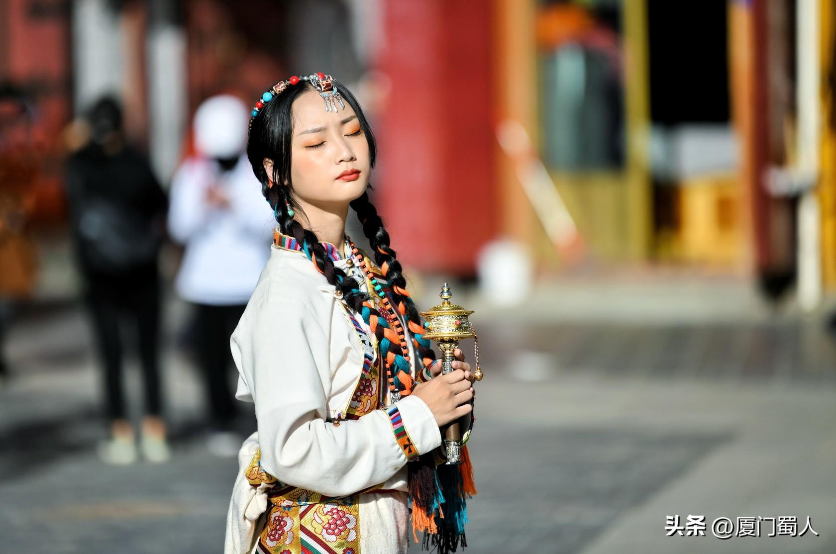 佩戴着马尔顿发套、精致梳编的辫子和艳丽头饰、腰束金丝缎腰带的靓女,穿着或华丽或粗犷等不同款式的藏族服饰,或手转尼玛经筒,或捻着串串佛珠,在街头寻找美的背景,把自己融入到特色元素里,留下值得回味的倩影,着实过了一把入乡随俗之隐。