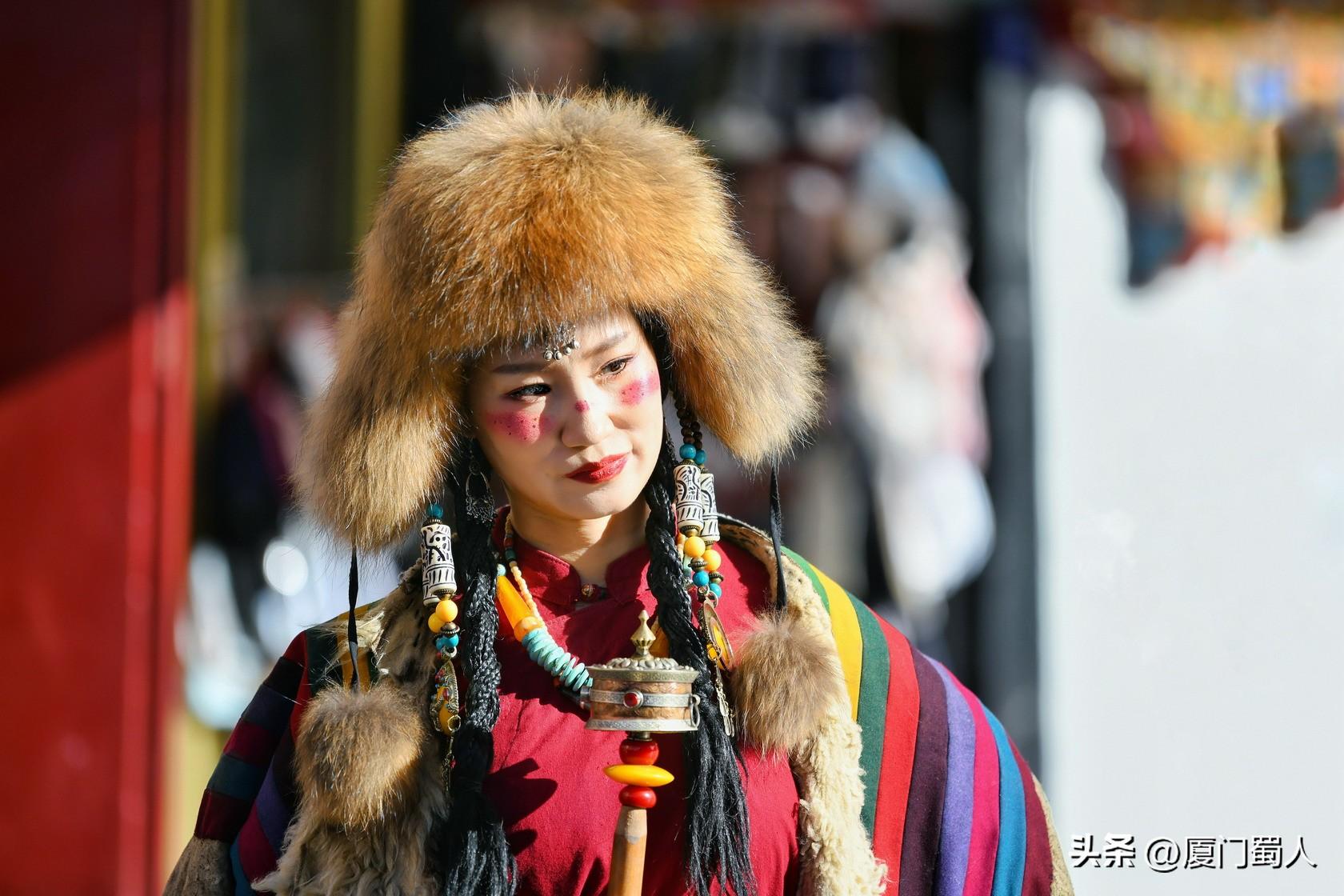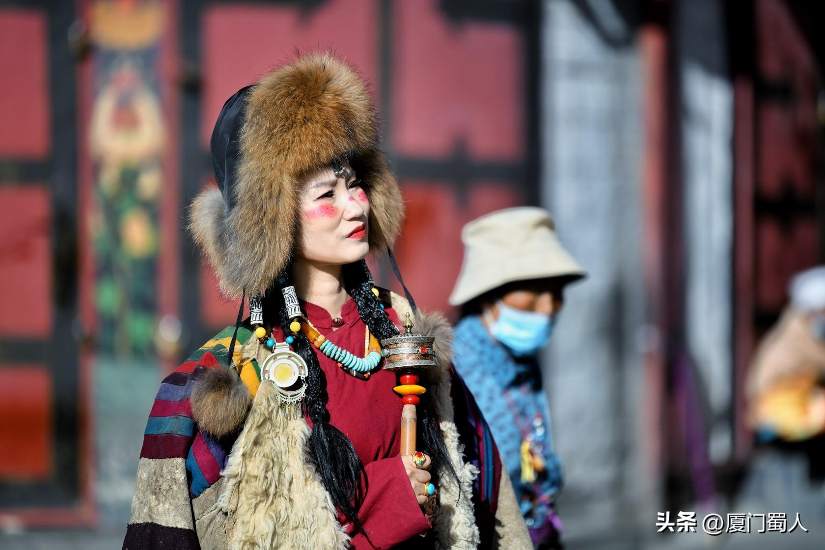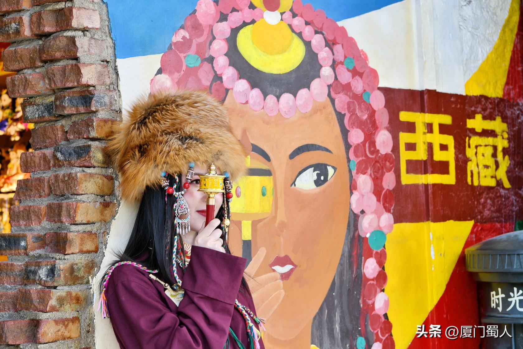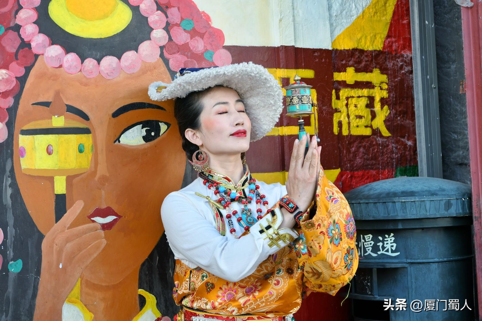 佩戴着马尔顿发套、精致梳编的辫子和艳丽头饰、腰束金丝缎腰带的靓女,穿着或华丽或粗犷等不同款式的藏族服饰,或手转尼玛经筒,或捻着串串佛珠,在街头寻找美的背景,把自己融入到特色元素里,留下值得回味的倩影,着实过了一把入乡随俗之隐。