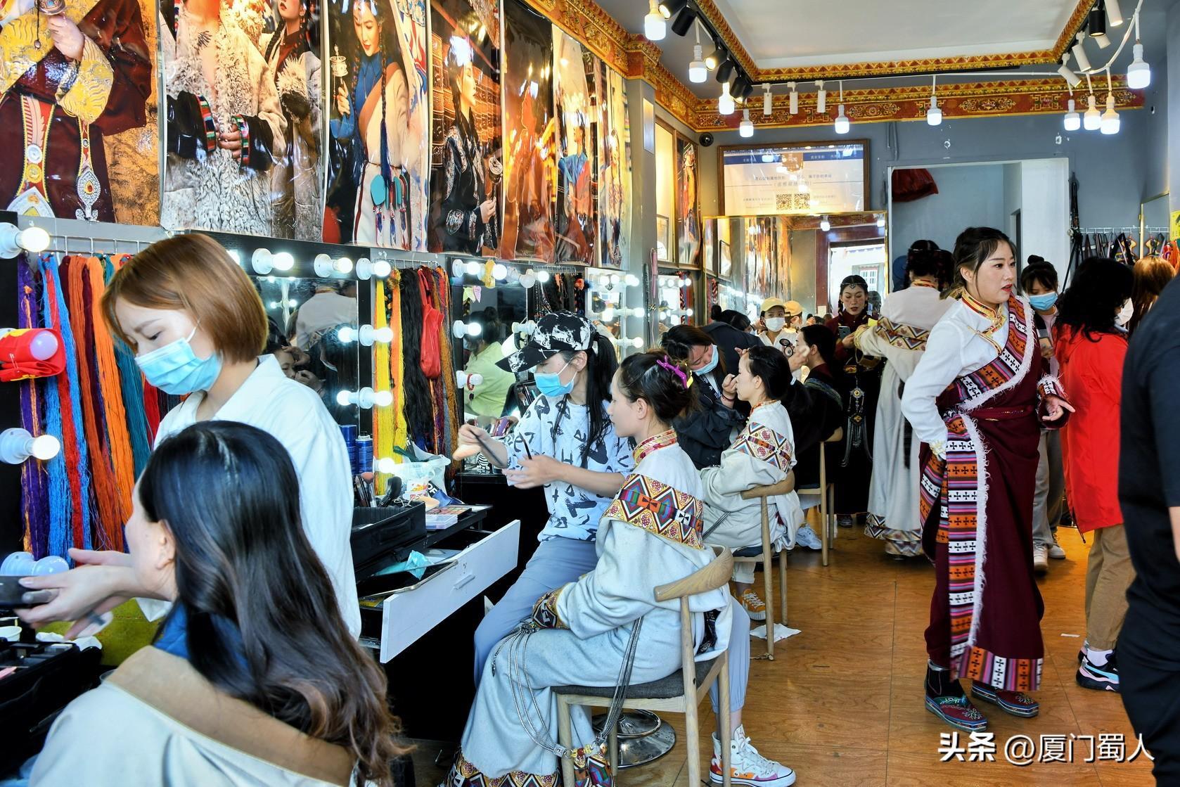 虽不是什么朝阳业态,在拉萨大街小巷却开遍了各种摄影工作室,不少内地摄影人也远行踊入以图分一杯羹。说不上有多么的摄影技艺,流水线式的旅拍还是能满足了人们追求美和代入感的消费需求。