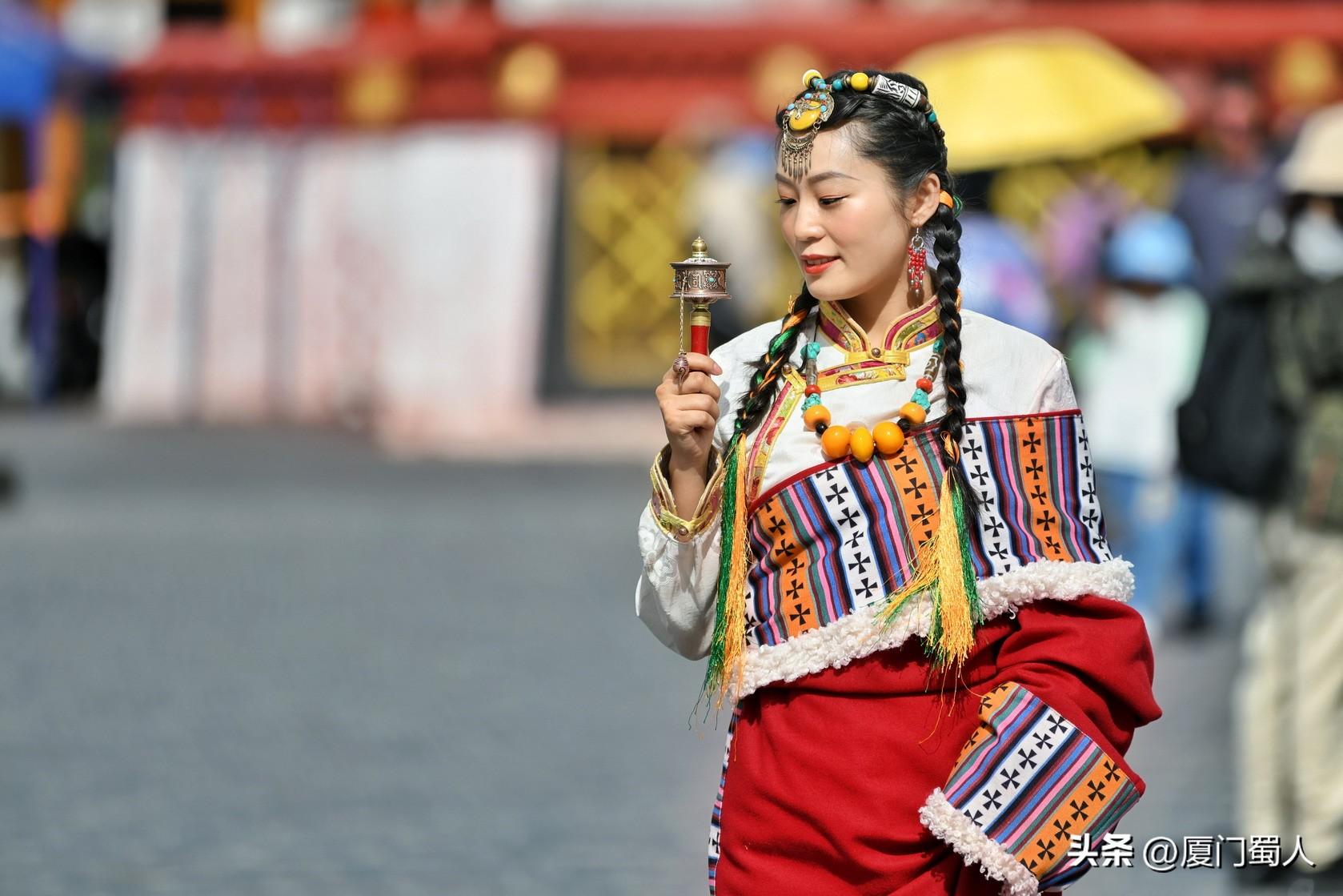 有人说,拉萨从来不乏美女,那是一种灵动的美,一种原生态之美。在发现美的世界里,你只有到雪域草原、牧人毡房、圣湖之畔,宗寺古街,方能得遇佳人,看似成了一种奢望。而在拉萨街头,美无处不在,其中,穿戴着绚丽多彩的藏族服饰的俊男美女穿梭大街小巷旅拍留影,给这座高原古城平添了华丽时尚之美。