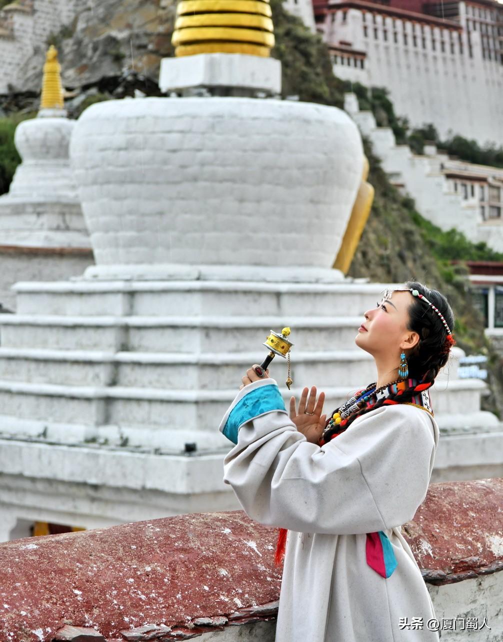 药王山上,在布达拉宫、白塔衬托下,这位美少女深情地演绎“玛吉阿米”的清纯与恬静。
