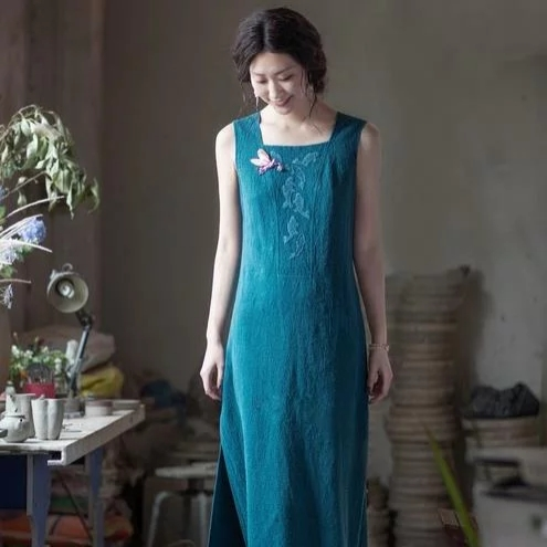 别致的色彩,介乎蓝与绿之间,是适合中国人的肤色,方领无袖,简洁的气质仍有时光在沉淀。
