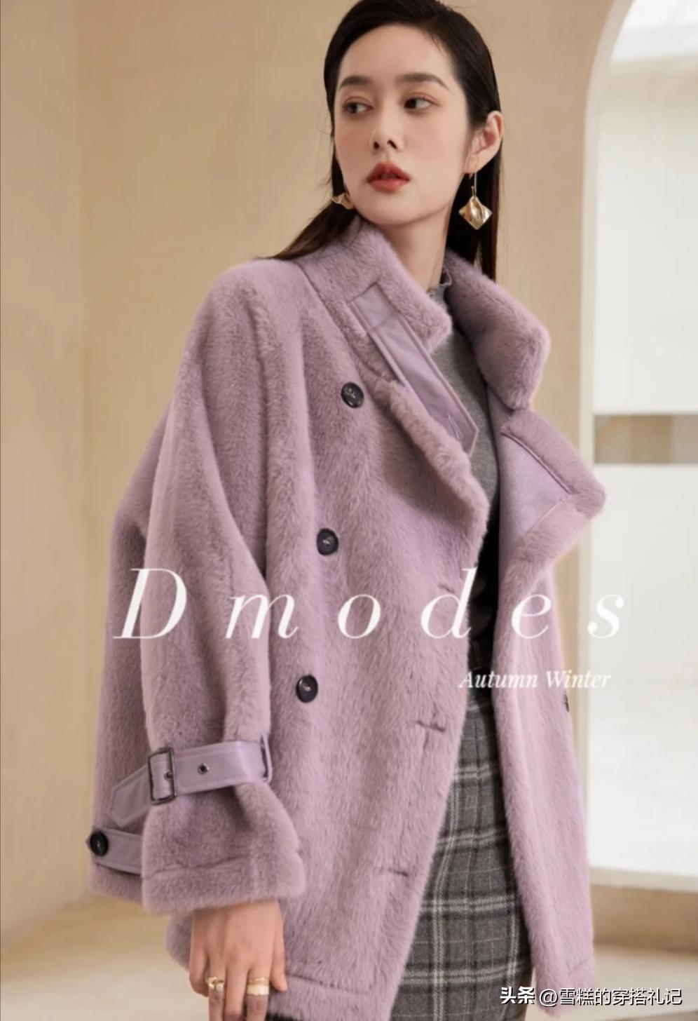皮草外套的贵妇感与香芋紫这款颜色的贵气,真的是适配的搭配组合了,相对于其他的颜色,香芋紫的皮草单品更具显白、显气色和略微冷艳的魅力值。