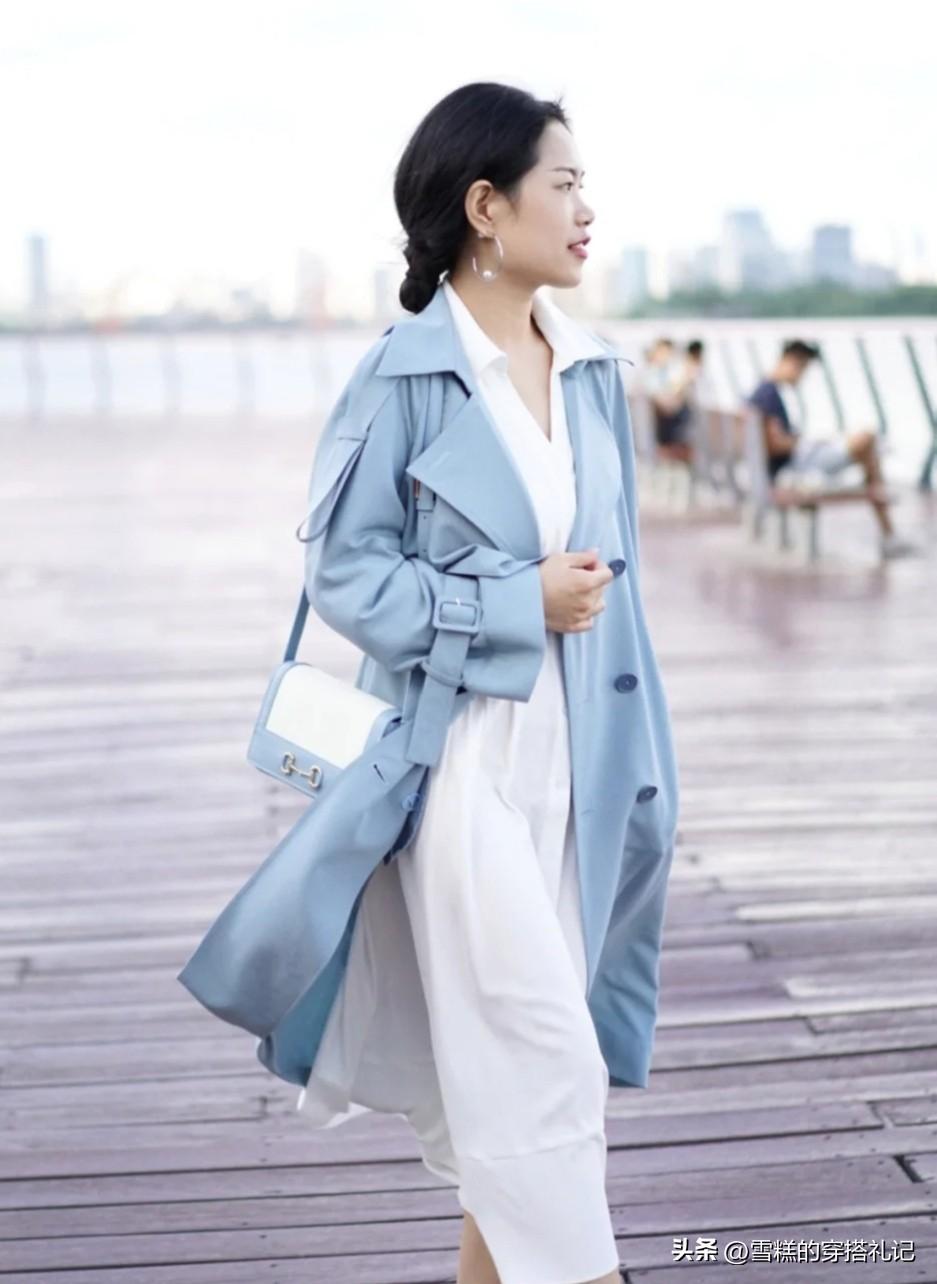 雾霾蓝与白色调的组合一直以来都的经典时尚,所衬托出来的气质会更倾向于高级和温柔的融合果哦,很适合在职场、约会的时候搭配时尚又温柔的女性魅力,谁不爱呢?