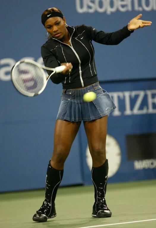 2. 2004 年,小威穿了一套可以走进电影镜头的比赛服装参加美网。虽然这套由运动型材料制成的服装完全不妨碍她像职业选手一样打球,但牛仔迷你裙、皮夹克和及膝靴让她看起来实在是酷毙了!