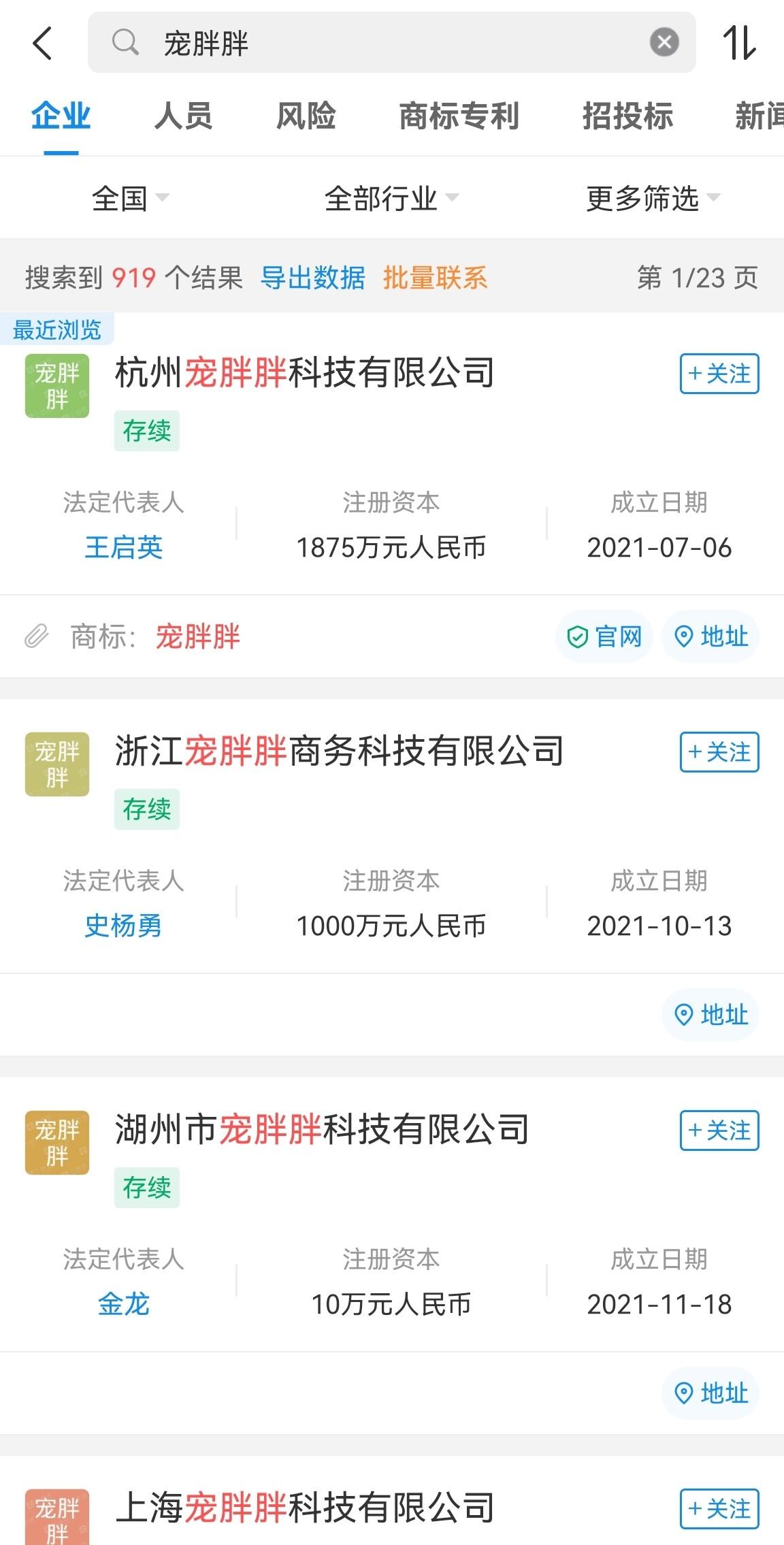四,成立百家城市公司,何来底气?很多人确实有这个疑问,综艺投入、天王嫂代言在产品未完全成熟就如此高调营销,何来底气?从企查查里搜索“宠胖胖”竟然已经有约千家搜索结果,打开第一个“杭州宠胖胖科技有限公司”的信息你就会发现其背后的财团就是步步高。步步高很多人一定很了解,目前知名的手机厂商OPPO和vivo都是步步高旗下,还有我们耳熟能详的步步高家教机。