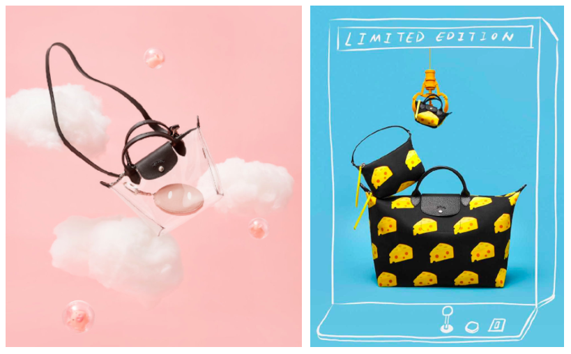 被品牌运用得出神入化的就是生肖老鼠了,毕竟对于动物的理解,中西方的文化差异不那么大。米老鼠、猫和老鼠等动画形象成了各个品牌争相联名的对象,Gucci、MiuMiu、SK-II等选择了米奇和米妮,KateSpade、伊蒂之屋等则选择了杰瑞。更有一些品牌独创了老鼠的卡通形象,如Burberry、KENZO等。Longchamp继续与包先生合作,推出以奶酪为主题的系列包袋,延续了猪年卡通可爱的风格。