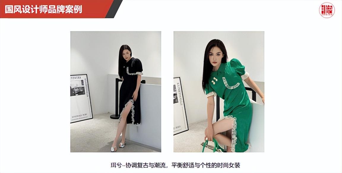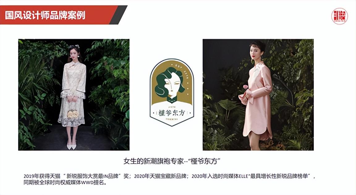 在对这些有过思考以后,这个品牌将自己的目标客户重新锁定在喜欢东方文化、爱穿旗袍的90后。但这个定位也一直在调整,大家可以看到在上图里他们的款式其实不是一种传统的旗袍设计,而是有了的Lolita公主风格。他们把公主风和中国旗袍的元素结合在一起,变成了一个新的旗袍小礼服。这个品牌目前主要以线上为主,今年线上年销售额已经做到8000万了。