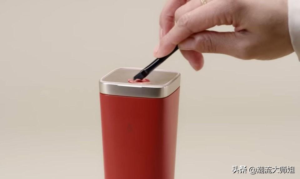 以红色款定制口红为例,在perso的内部有色彩替换芯,使用前需要先下载一个关联的APP,选择自己想要的一个色号,接到指令后,perso会冒出膏体,混合后就能得到自己想要的颜色啦。