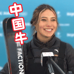 谷爱凌拿下第一金后的采访中,为中国点赞,说出一句“中国牛”,还比起“中国牛”手势。