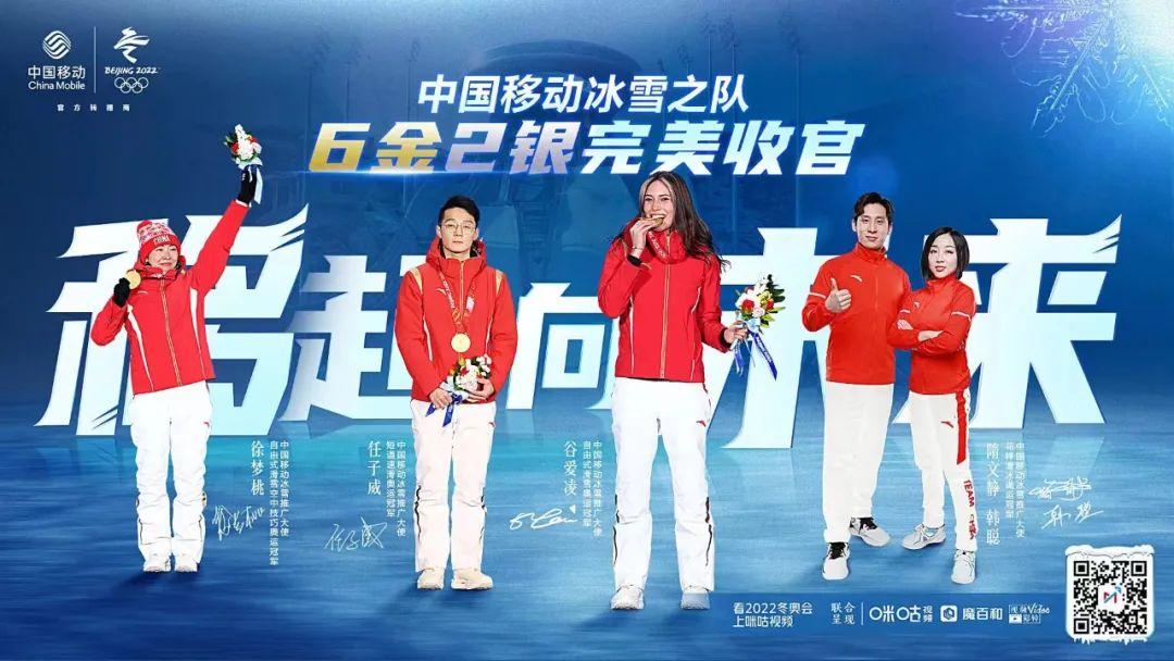 上一个案例中有提到,中国移动也是提前押中“宝”的品牌之一。元气森林“押三中三”赢麻了,而中国移动“押5中6”也赢翻了——早在去年8月,中国移动便签约谷爱凌成为5G冰雪推广大使,随后还签下徐梦桃、隋文静/韩聪、任子威等,组成“中国移动5G冰雪之队”。