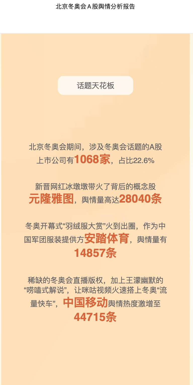 《冬奥运动品牌价值榜》、《冬奥官方赞助商营销传播声量榜》以及懒熊体育发布的《北京冬奥会品牌营销榜》等,均从不同角度,以专业的可量化的数据维度,盘点了品牌们的冬奥表现。