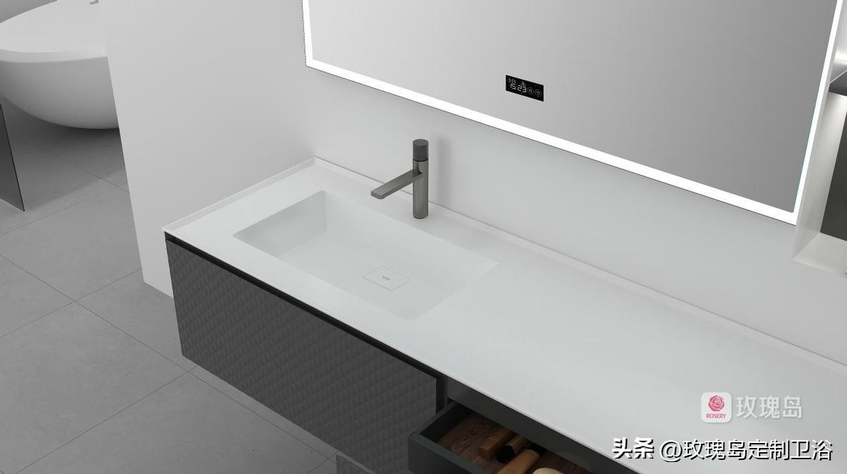 那么,浴室柜哪个品牌好?好的浴室柜品牌又是什么样子的呢?玫瑰岛深刻洞察现代人的生活方式和消费需求,将轻奢时尚、健康环保、保障的理念融于产品,今天小编就从5点给大家推荐一款熠熠生辉的“艺术品”——人造石一体盆浴室柜。