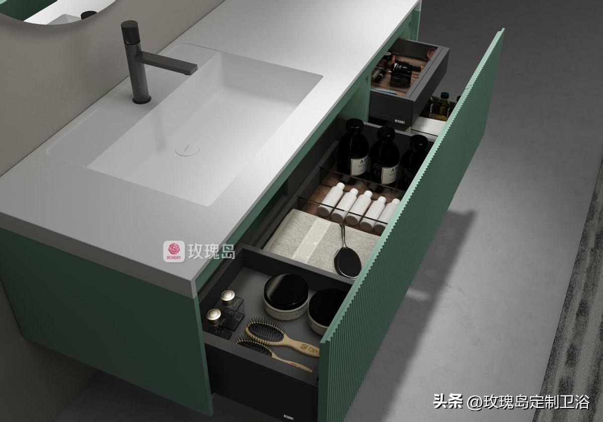 另外,玫瑰岛人造石一体盆浴室柜在设计细节上可谓用心,自然的光影布局,更显浴室柜卓越质感,彰显主人高级的生活品位。