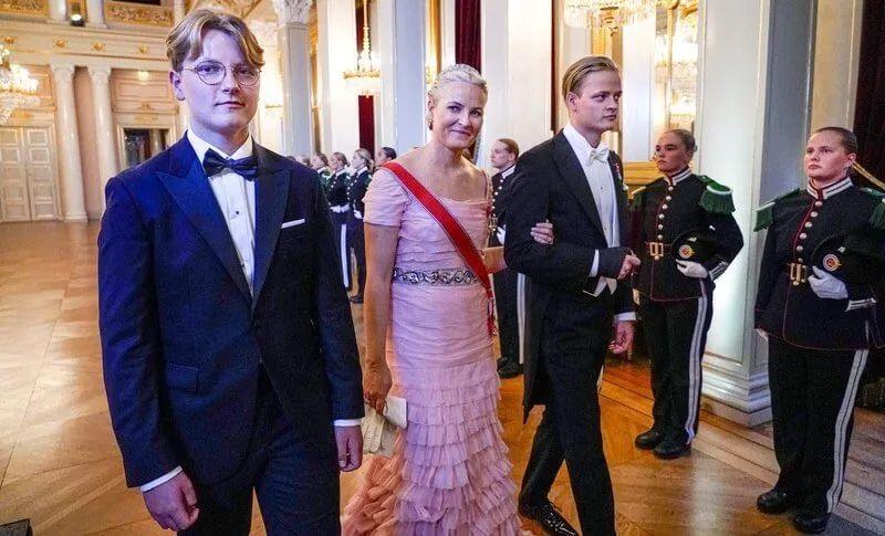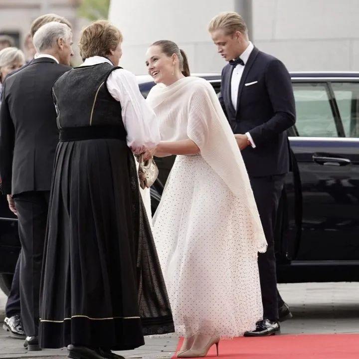 英格丽德公主的妈妈梅特·玛丽特王妃,领着斯维尔·马格努斯王子以及和前夫生的儿子马吕斯·博格·霍伊比,粉色裙子也是旧衣了,“穷王室”名副其实~