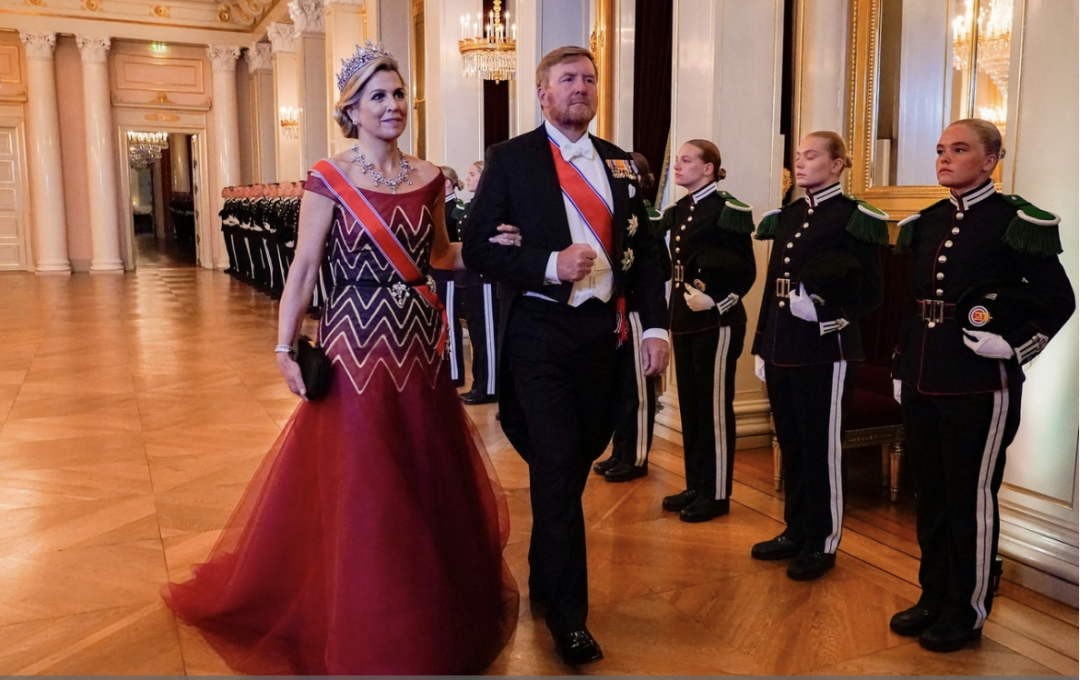 荷兰王后马克西玛穿得也是一如她往日的风格,红色礼服喜庆又大气。