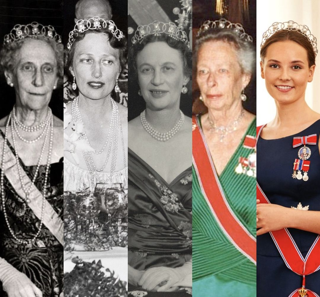这顶冠冕起初是瑞典的卡尔王子(拉格茜尔公主的姥爷、英格丽德曾曾祖父)在1900年世界博览会上从宝诗龙购入,送给她的妻子英格伯格的,后来又给了拉格茜尔公主,如今又传承到英格丽德公主手中。