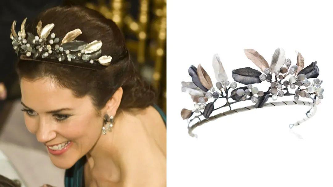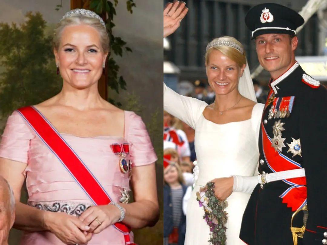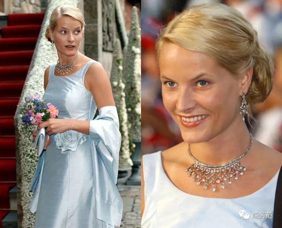 佩戴的这顶钻石雏菊头饰,是和哈康王储结婚时,哈拉尔国王和宋雅王后作为结婚礼物送的,很多重大的场合梅特都会戴这顶。