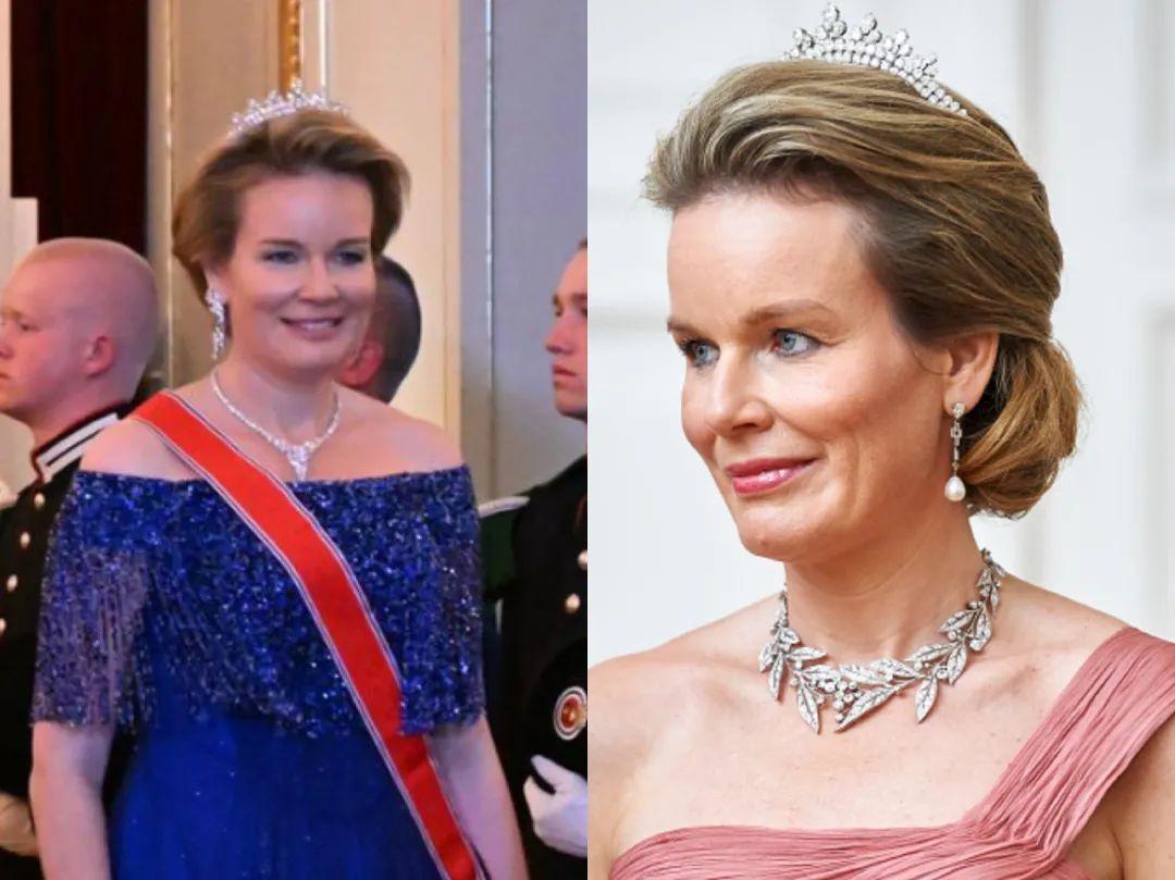 比利时王后马蒂尔德的冠冕来自比利时珠宝商Wolfers,还可以当做项链佩戴,也是她爱的单品之一了,佩戴频率很高。