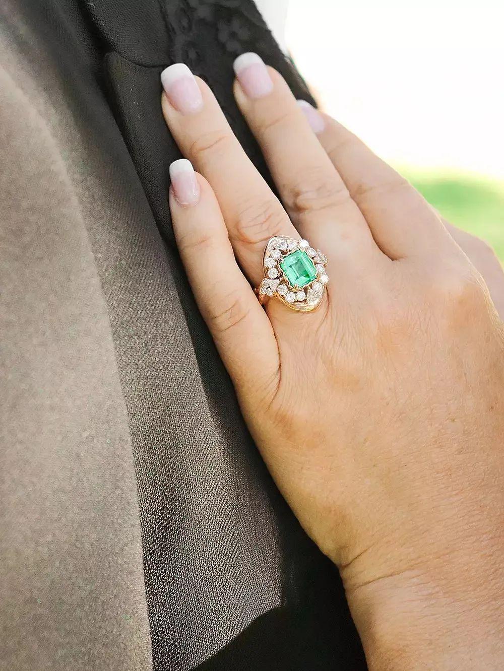 终于这个月月初,Durek就跟公主求婚了。订婚戒指还挺华丽,主石是一枚3.5克拉祖母绿,周围环绕着钻石,其中有四颗三角形切工钻石代表了地球、空气、水和火。
