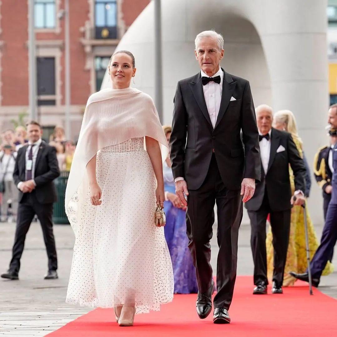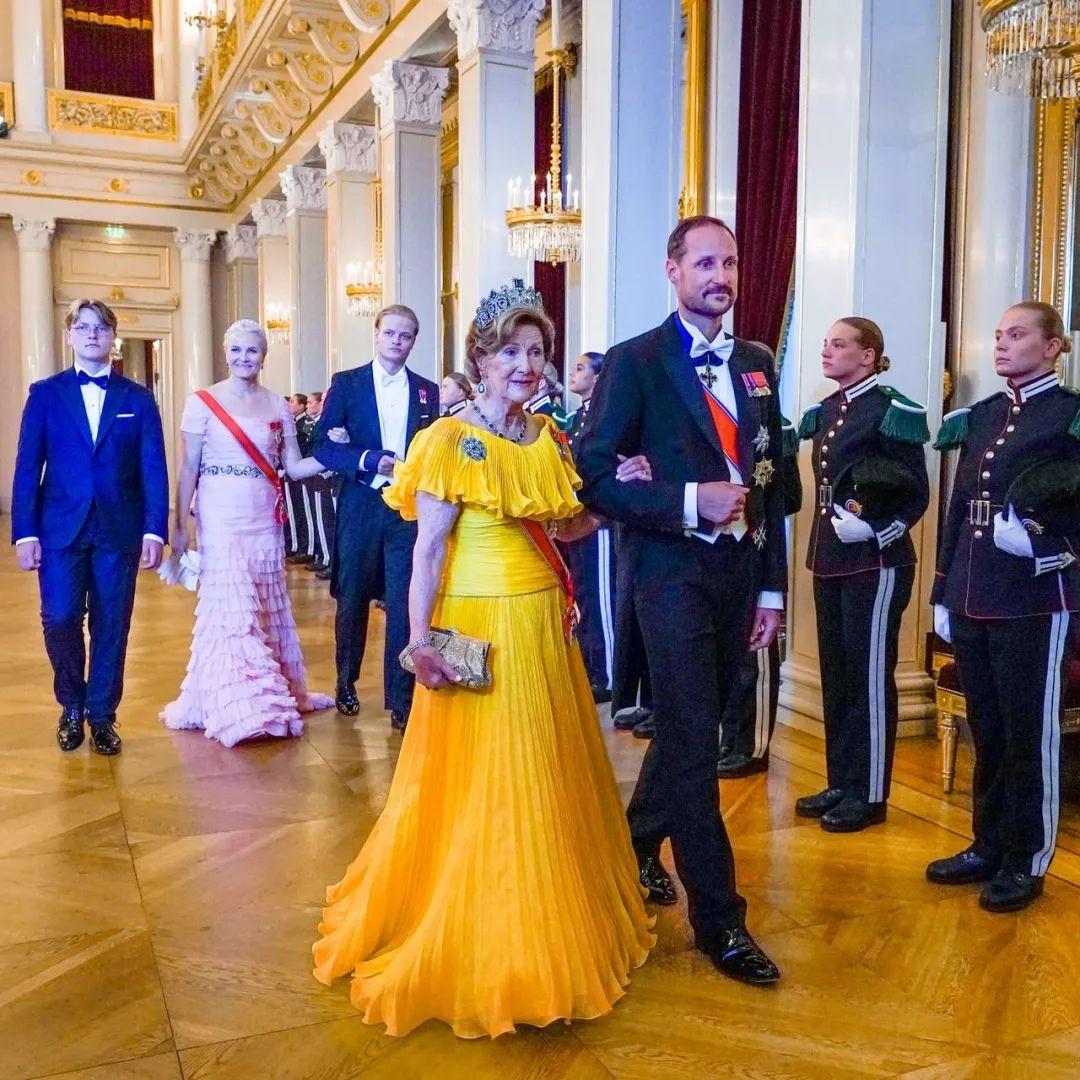 这次未来女王的成人礼,排面也是很足。活动持续了两天,第一天是挪威政府接待晚宴,小公主和首相一起入场,隆重。