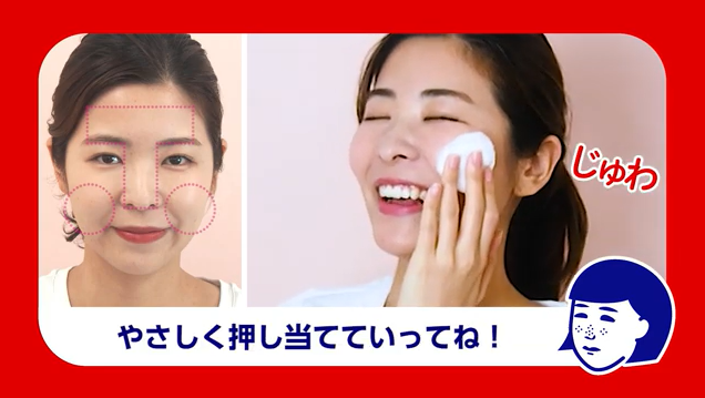 ▲重点使用在T区和脸颊这些容易出油部位,后再将剩余的化妆液涂抹全脸。