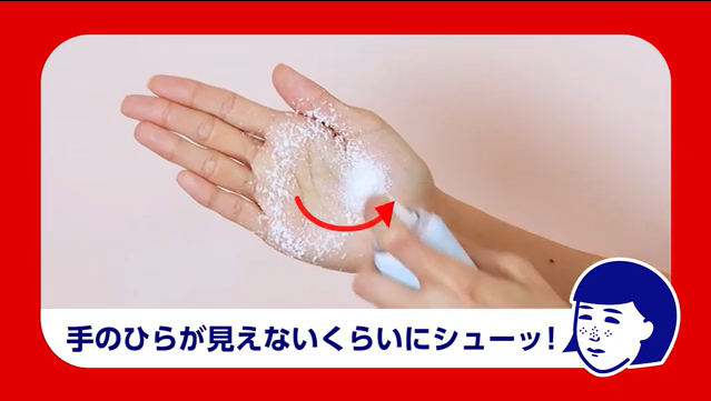 ▲ 把喷头对准手掌心,按压喷头打圈。
