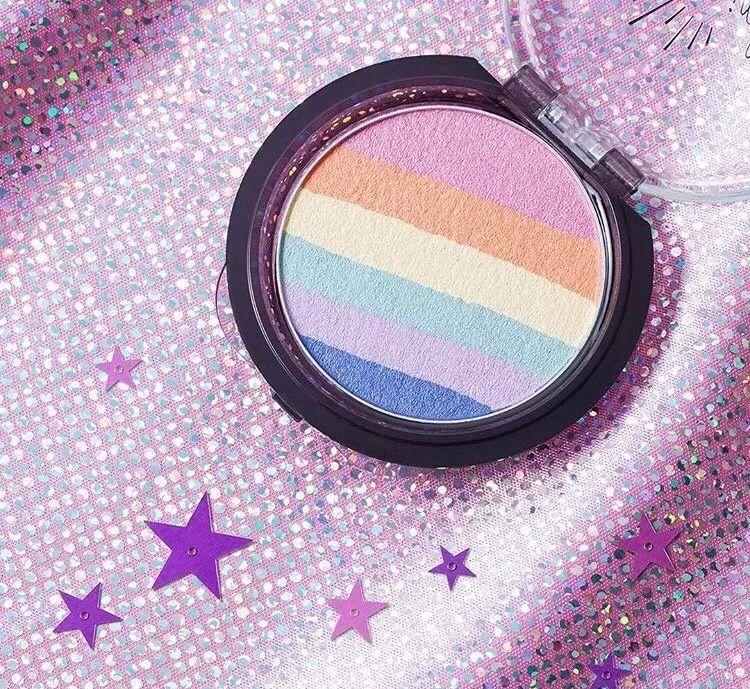 彩虹的配色十分抓人眼球,更像一个多功能盘,粉色橘色都可以拿来当腮红。
