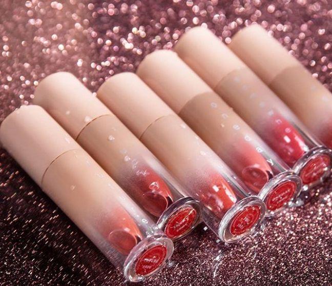 除了眼影盘,天鹅绒哑光液体唇釉也是不少同学的爱用,刚上嘴是水的感觉,像是在涂滋润型唇膏。