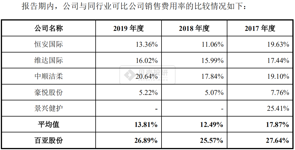 2017年,生产ABC和Free的景兴健护广告宣传费用达到9700万,销售费用率为25.41%。相比较之下,主要做ODM贴牌的豪悦护理的销售费用较少。