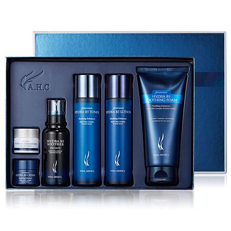 AHC水乳男士套装这款水乳以洋甘菊和迷迭香为主要的植物萃取精华,能修复红血丝调整脆弱的敏感肌,添加迷迭香有更好的抗氧化能力可以提高肌肤锁水性,透明质酸钠作为核心成分能够以小分子的玻尿酸渗入粗糙的肌肤底层进行补水,避免油性肌肤的缺水油腻以及干性皮肤的干燥细纹,作为一款基础的补水产品,AHC B5玻尿酸水乳还是适合男士用的。