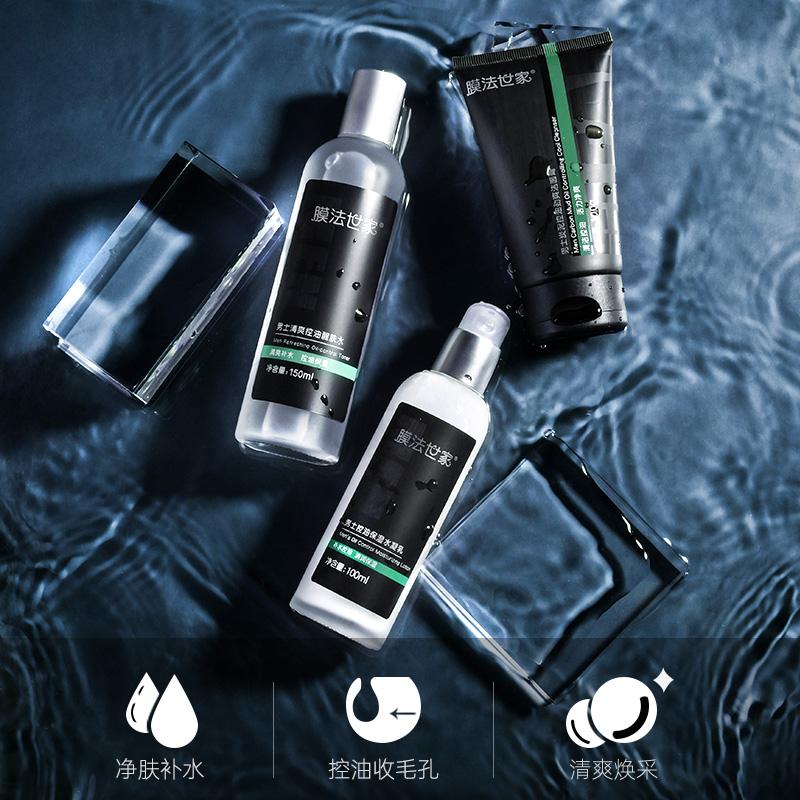 膜法世家男士护肤套装专为男士定制,一套满足男性肌肤多维渴求,多种植物臻萃,质地清爽,舒润不油腻,补水控油,令肌肤更显平滑细嫩!