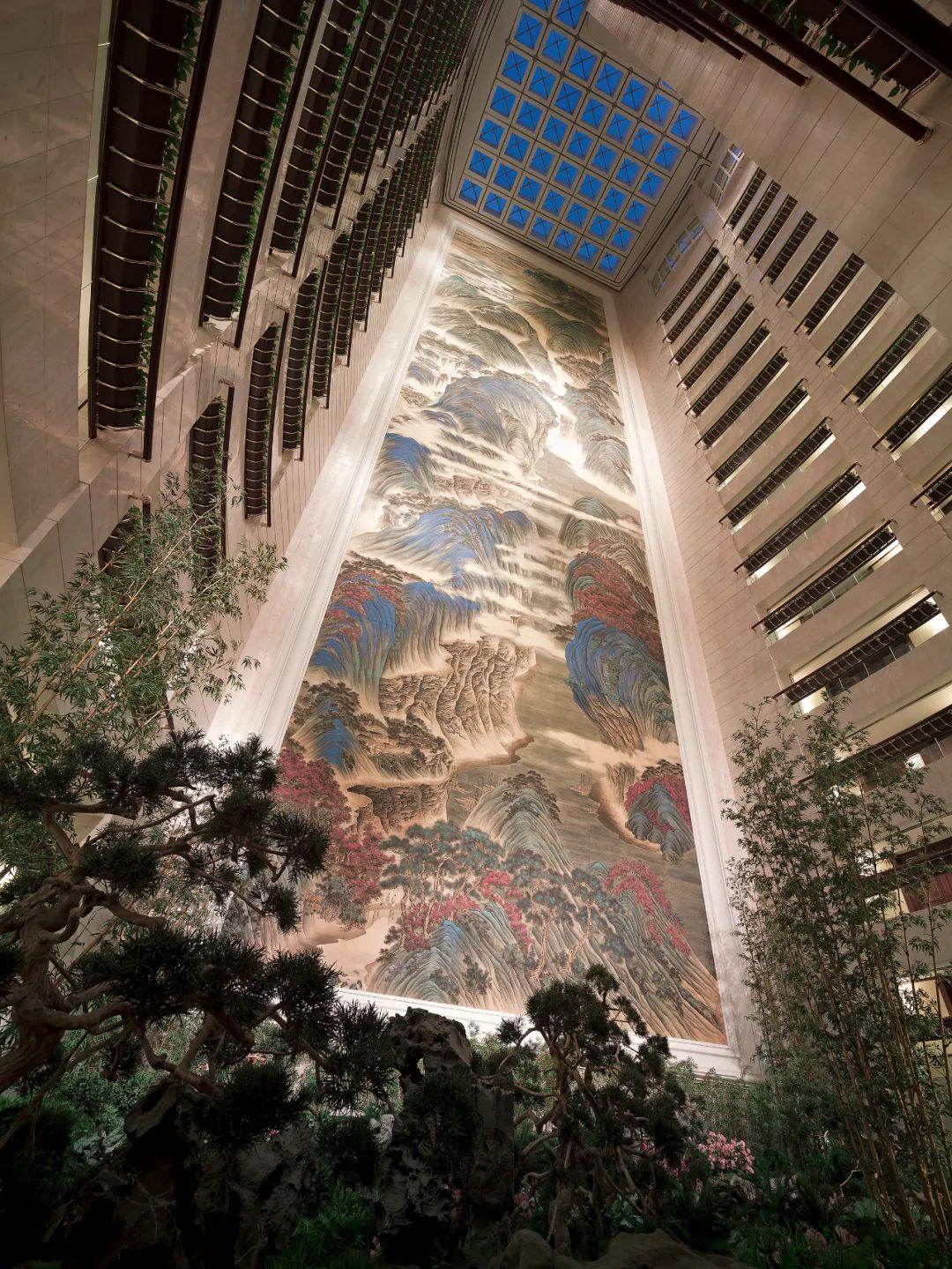 这间香格里拉让人印象深刻的记忆点,当属贯穿在41-56层客房楼层中央庭院的巨型丝绸壁画《大好河山》,把香格里拉之“仙”展示得淋漓尽致。据闻酒店将于年内推出全新概念的健身楼层,8层露台上的户外泳池也是其中一部分,她被镶嵌在一片热带花园之中,亦为城中不可多得之绝景。甚至在宴会区域,都有一个独特的宴会场所空中花园,将都市“丛林”的氛围渲染得恰到好处。