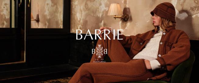 BARRIE是苏格兰一家专业生产羊绒系列产品的工厂,以世代相传的羊绒处理工艺闻名于世。 自1903年在苏格兰成立以来,数十年来一直与时尚界的合作,每一件BARRIE针织单品都经由羊毛专家负责染色并纺成毛线,以四十多道工序精心制作而成,其中大部分都是手工操作。 2012年BARRIE被CHANEL收购,2014推出自己的同名品牌。在与CHANEL超过25年的合作过程中,BARRIE针织一直为CHANEL生产标志性的双色滚边羊绒开襟衫以及许多精致的羊毛衫。