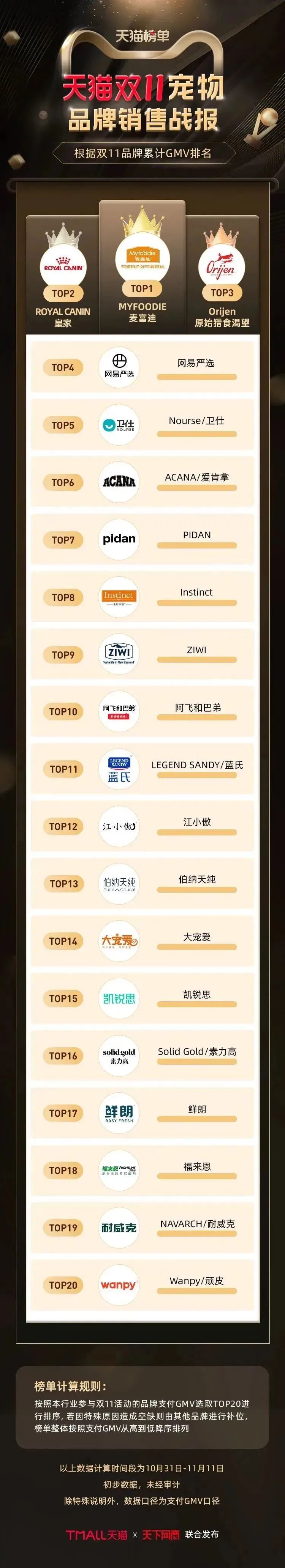 阿飞和巴弟、Pidan、网易严选等50个宠物品牌双11抢先购中成交破千万。宠物品牌销量榜TOP20中,皇家、渴望等海外大品牌之外,国产品牌占据过半位置。国产自行车老牌喜德盛,双11开门红销售额增长接近150%。第12年参加双11的骆驼,全网销售额翻倍增长,露营装备销售额同比增长380%。黑马跑出,新手迎来紧张又激动的“第一次”;老牌重燃,“老将”迎来突破自我的“又一次”。从第一年双11总成交额1800万,到今年10分钟破亿,波司登在天猫实现跨越式成长,位列今年天猫双11女装第一及男装第二。伊芙丽集团旗下女装麦檬今年实现天猫销售额破亿。