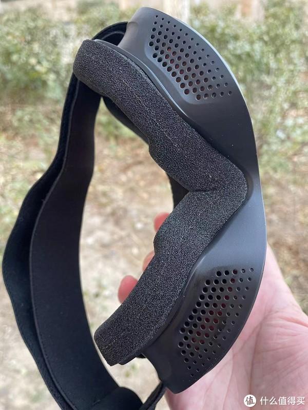 这个镜片拿不下来对我这“四眼”尤其不友好。有磁吸的镜片休息的时候一摘就好了,这个可不行,要摘得直接把松紧带摘下来,我干脆扒拉下来挂脖子上,不过再戴回去的时候这“四眼”又是一顿调整。