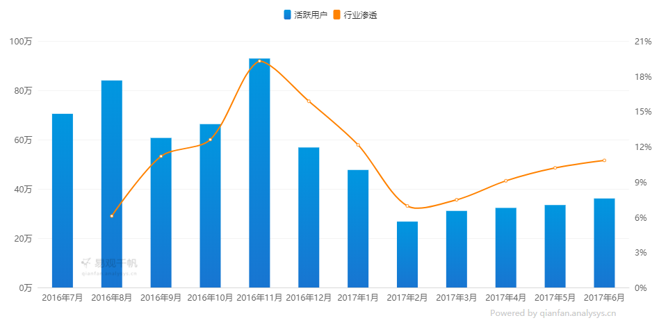 图3 2016-2017美丽修行MAU变化趋势