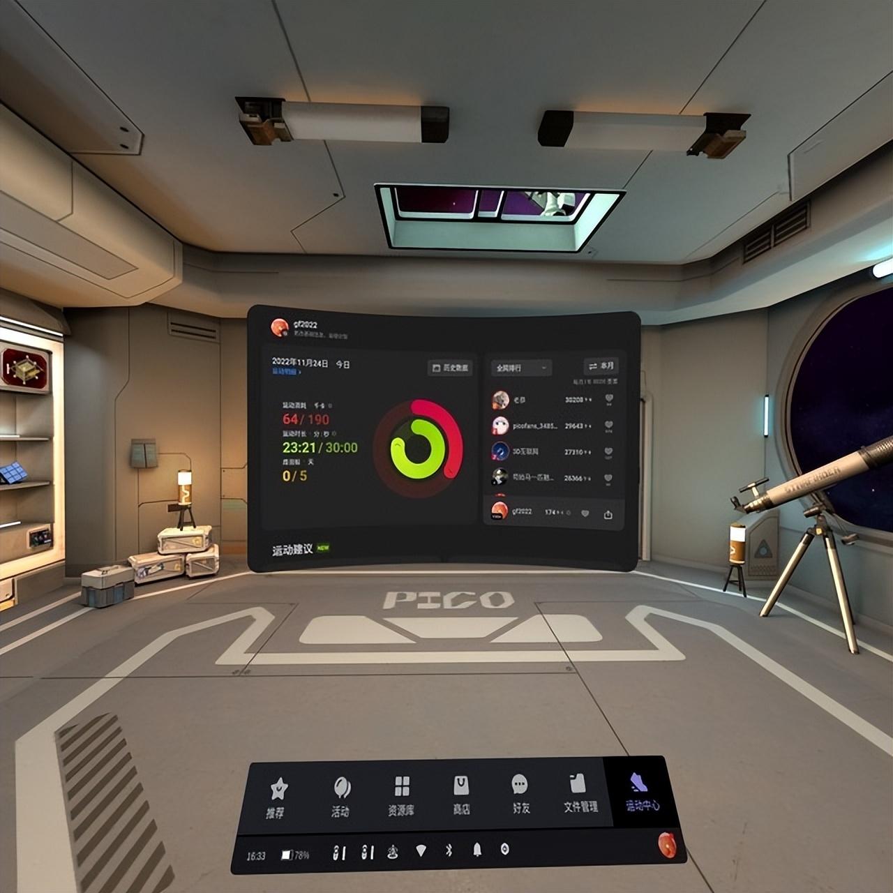 通过PICO自研的CalSense体能算法,我还可以在运动中心内查看卡路里燃烧量,并且它还支持运动数据可视化、多端数据查看,从而实时了解健身果,从而帮助我做到更科学运动健身;同时,手柄上新增的截屏键与运动排行等功能还能更快捷地进行截图/录屏,帮助我记录VR世界里的精彩瞬间,还可以和好友进行PK与联动。这些“钻研”都是PICO拓宽VR使用场景很好的一次“尝试”。
