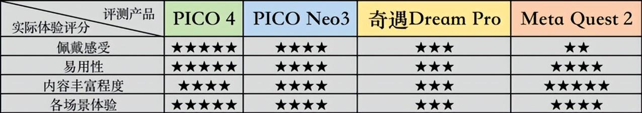 不管是从VR设备屏幕的显示清晰度、视场角范围和PPD等维度,还是屏幕连接虚拟和现实世界所呈现的彩色透视功能的清晰度来看,PICO 4在强悍的软硬件加持下,实际综合体验都优于其它三款产品。