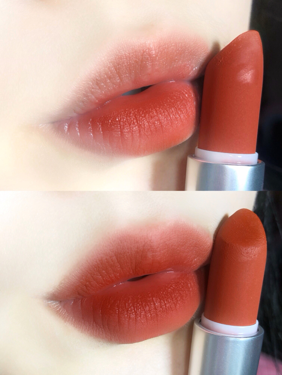 这是今年很红的泫雅色,有砖红和枫叶红在一起的感觉,适合黄皮的妹子,上嘴以后比较显白,持妆也很久,是一只比较提气色的颜色,薄涂很温柔,厚涂很有气质~