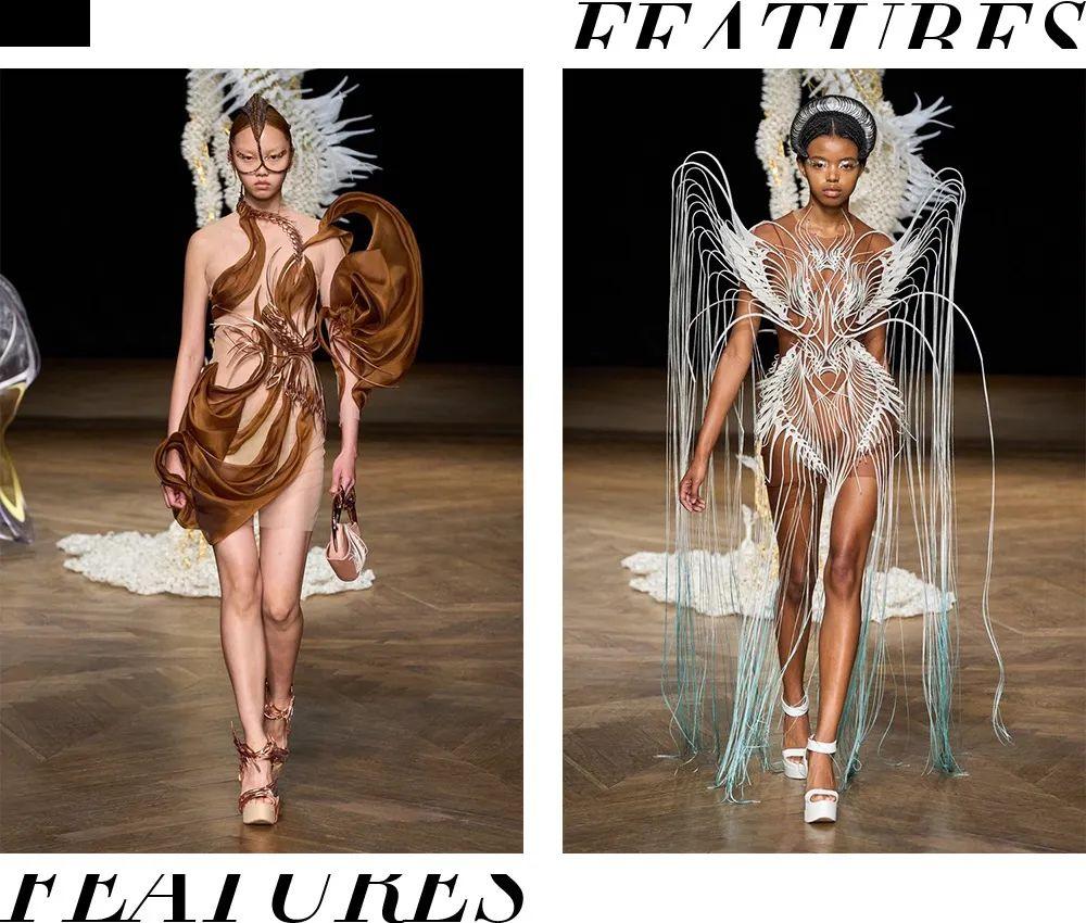其实这项技术在时尚界早已不算新鲜,被称为时尚界“科学家”的艾里斯·范·荷本(Iris Van Herpen)在2009年开始就将目光投向3D打印技术,将时尚与建筑、艺术、科学相结合,创造出我们看到的这些超越于普通的高定所能达到的视觉张力,在她手中的衣服栩栩如生,让静止的服装呈现出动态的果,仿佛像有着生命力一般。