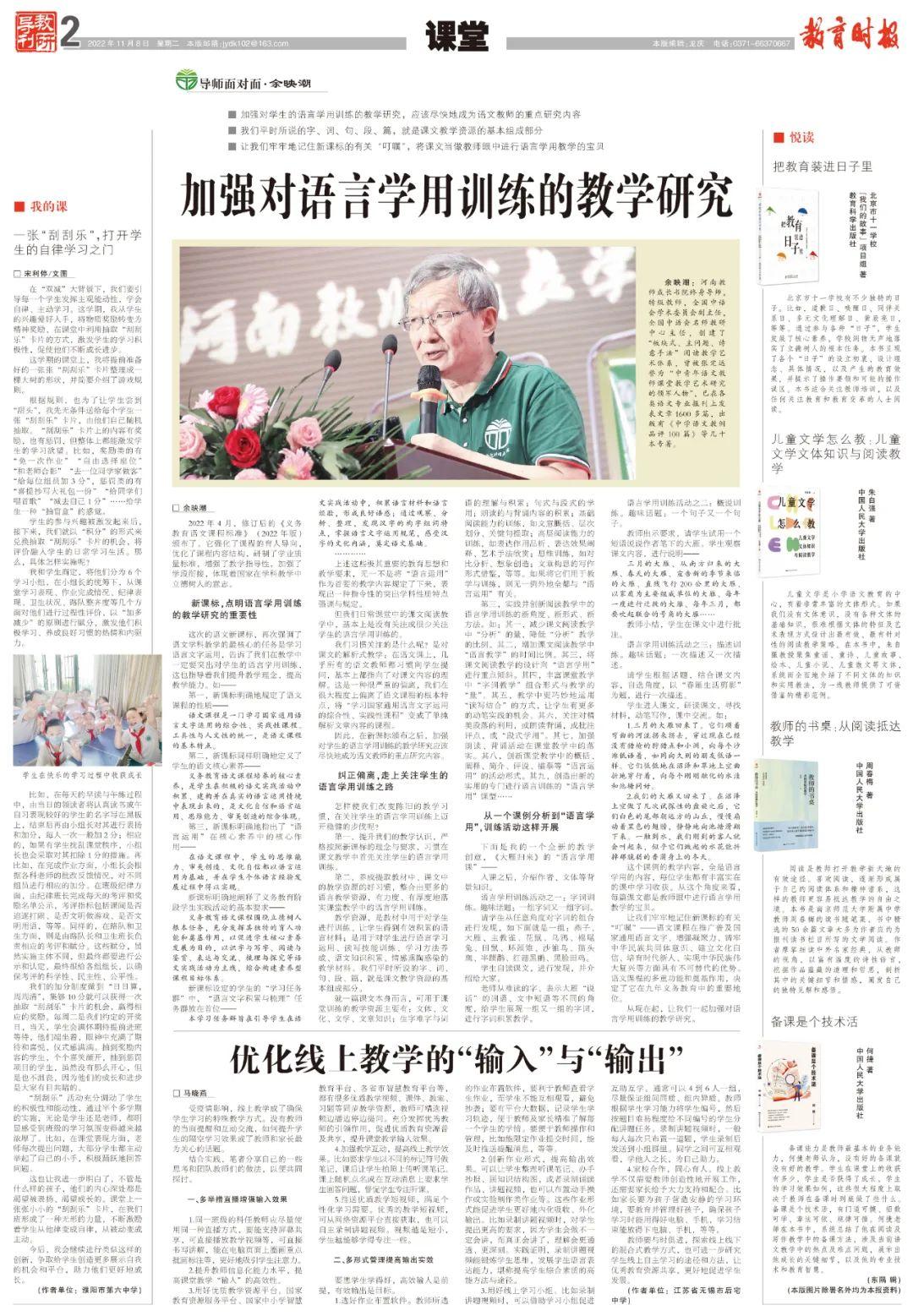 第三,实践并创新阅读教学中的语言学用训练的新角度、新形式、新方法。如:其一,减少课文阅读教学中“分析”的量,降低“分析”教学的比例。其二,增加课文阅读教学中“语言教学”的时间比例。其三,将课文阅读教学的设计向“语言学用”进行重点倾斜。其四,丰富课堂教学中“字词教学”组合形式与教学的“量”。其五,教学中更巧妙地运用“读写结合”的方式,让学生有更多的动笔实践的机会。其六,关注对精美段落的利用,或朗读背诵,或批注评点,或“段式学用”。其七,加强朗读、背诵活动在课堂教学中的落实。其八,创新课堂教学中的概括、阐释、简介、评说、描摹等“语言运用”的活动形式。其九,创造出新的实用的专门进行语言训练的“语言学用”课型……