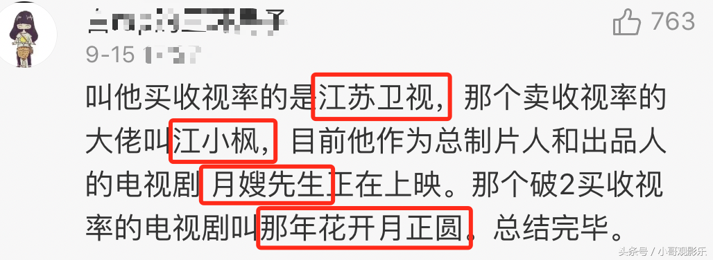 不过细心的网友道出了这位操作收视率的大神和去年收视破2的电视剧,吴奇隆和李小冉饰演的《月嫂先生》以及陈晓和孙俪主演的《那年花开月正圆》中招。郭靖宇揭露的是买收视率的正是江苏卫视,今年8月份上映并挤掉《娘道》的正是《月嫂先生》,这部电视剧的总制片是江小枫,去年破2买收视率的电视剧正是《那年花开月正圆》。