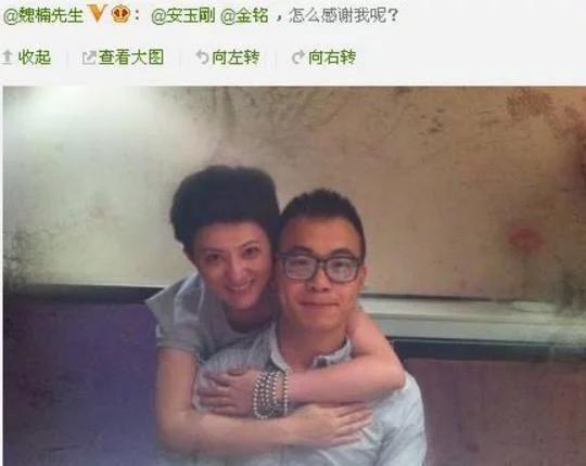 金铭的同学魏楠曾经在微博发了一张金铭和北京影行天下总经理安玉刚亲密相拥的照片,许多自媒体纷纷猜测他们是一对儿。